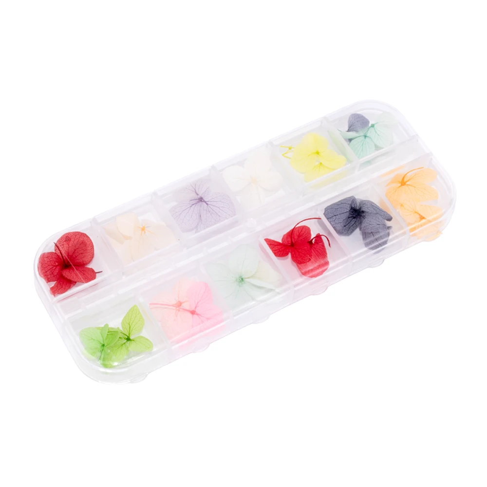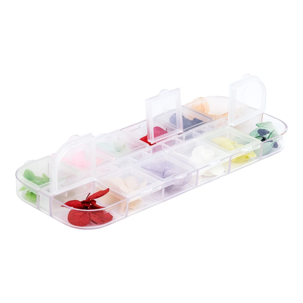 Caja organizadora con 12 tonos de crisantemos de agua secos. Ideales para encapsulados botánicos súper delicados.