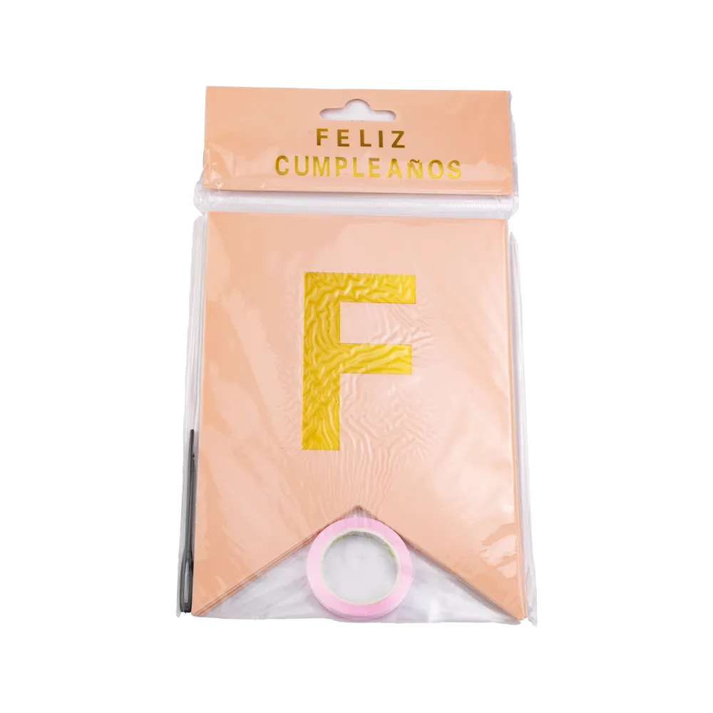 BANDERIN FELIZ CUMPLEAÑOS ROSADO