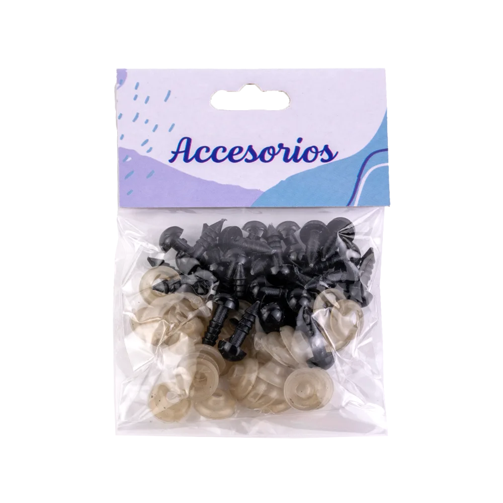Ojo Seguridad 0.7cm 30 Unid: Este paquete de 30 ojos de seguridad de 0.7 cm es perfecto para proyectos medianos, como amigurumis o muñecos de peluche. Hechos de materiales resistentes, estos ojos proporcionan un acabado seguro y detallado, ideal para crear figuras llenas de expresión y personalidad.