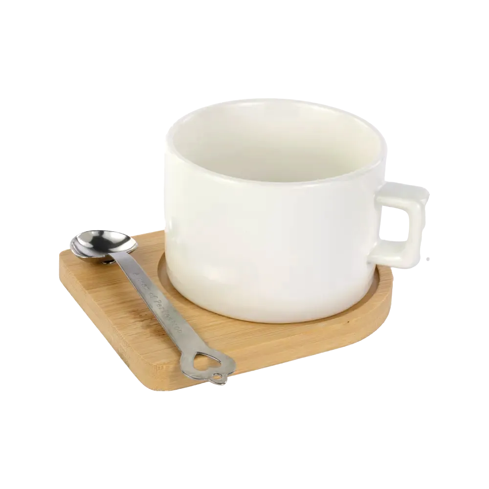 SET DE CAFE CON BASE DE BAMBU + CUCHARA 180ML